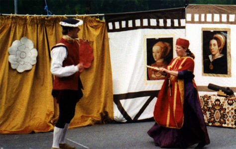 Drawing on skills in mime, music, storytelling and puppetry, the audience become involved as an exciting tale unfolds. "Welcome to the Tudor Art Gallery ...", the scene is set but these paintings reveal more than the eye first sees. With the Spanish Armada in the English Channel and William Shakespeare waiting in the wings, the stage is set for an absorbing Tudor tale.